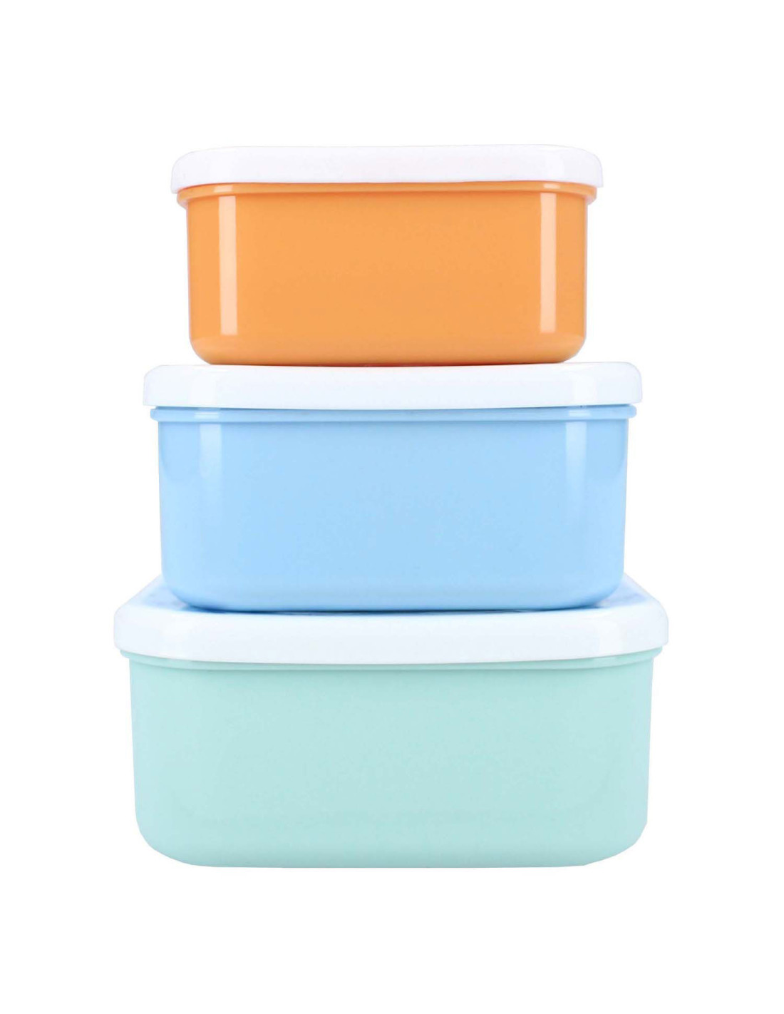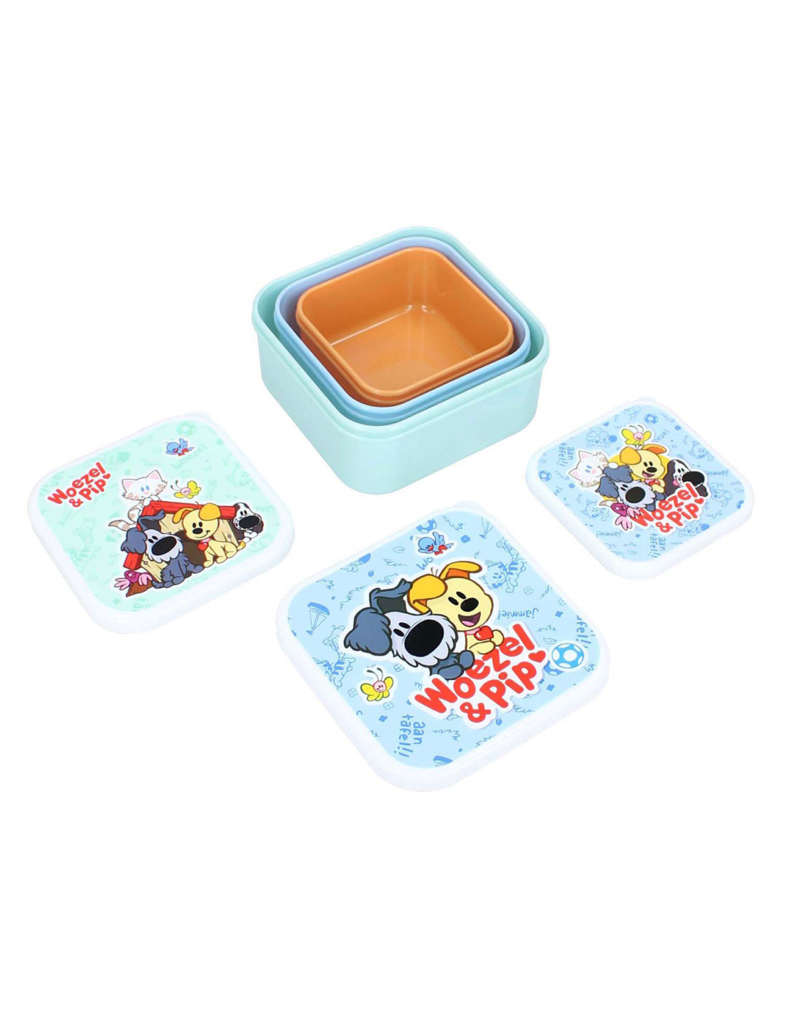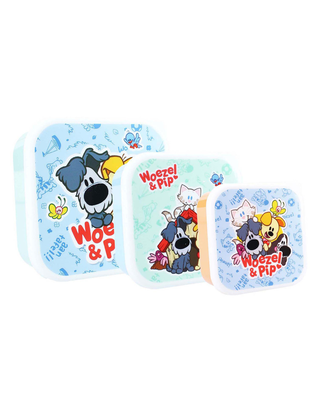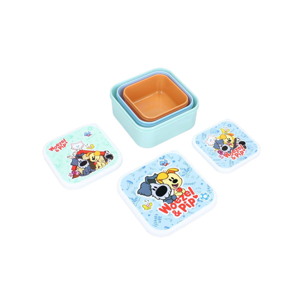Deze 3in1 snackboxen van Woezel & Pip uit de 'Fresh Bites' collectie zijn ideaal om een snack voor onderweg mee te nemen. Er zijn 3 snackboxen van verschillende formaten en kleuren. De snackboxen sluiten stevig en ze passen gemakkelijk in elkaar. Op deze manier zijn de handig op te bergen.