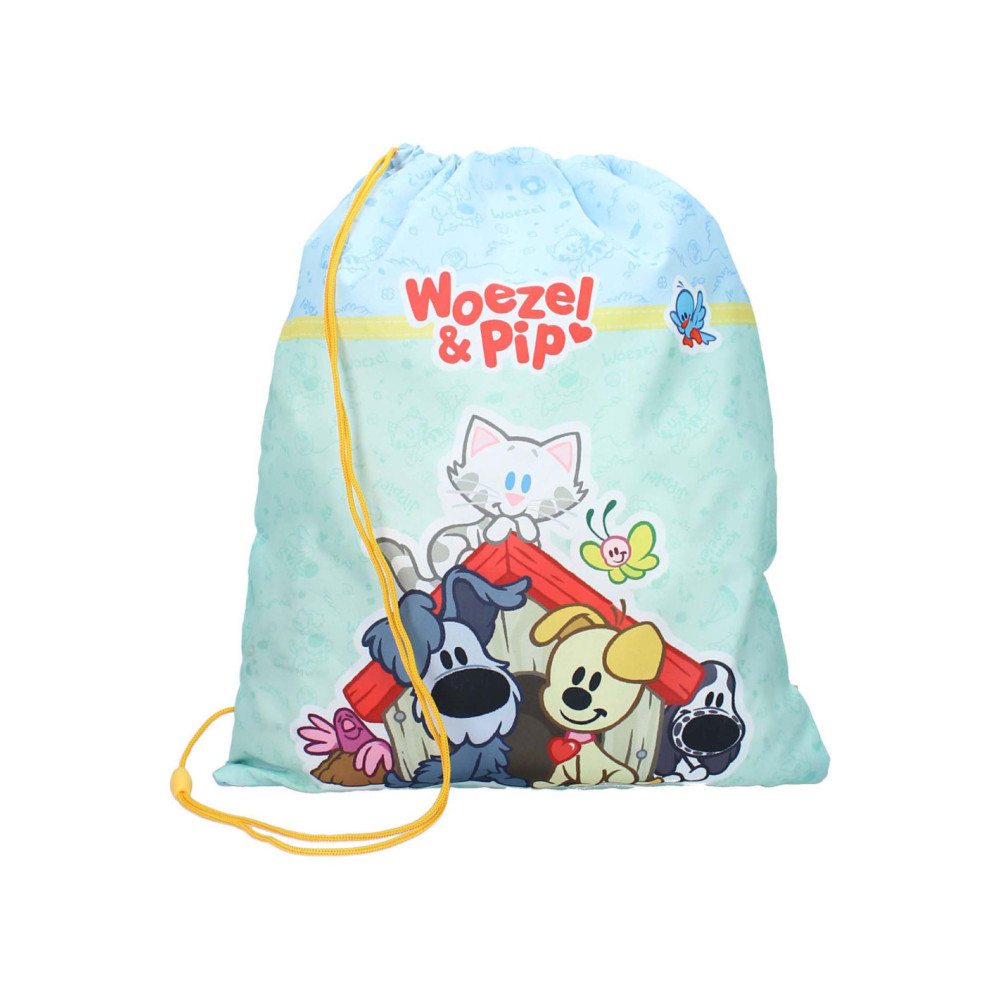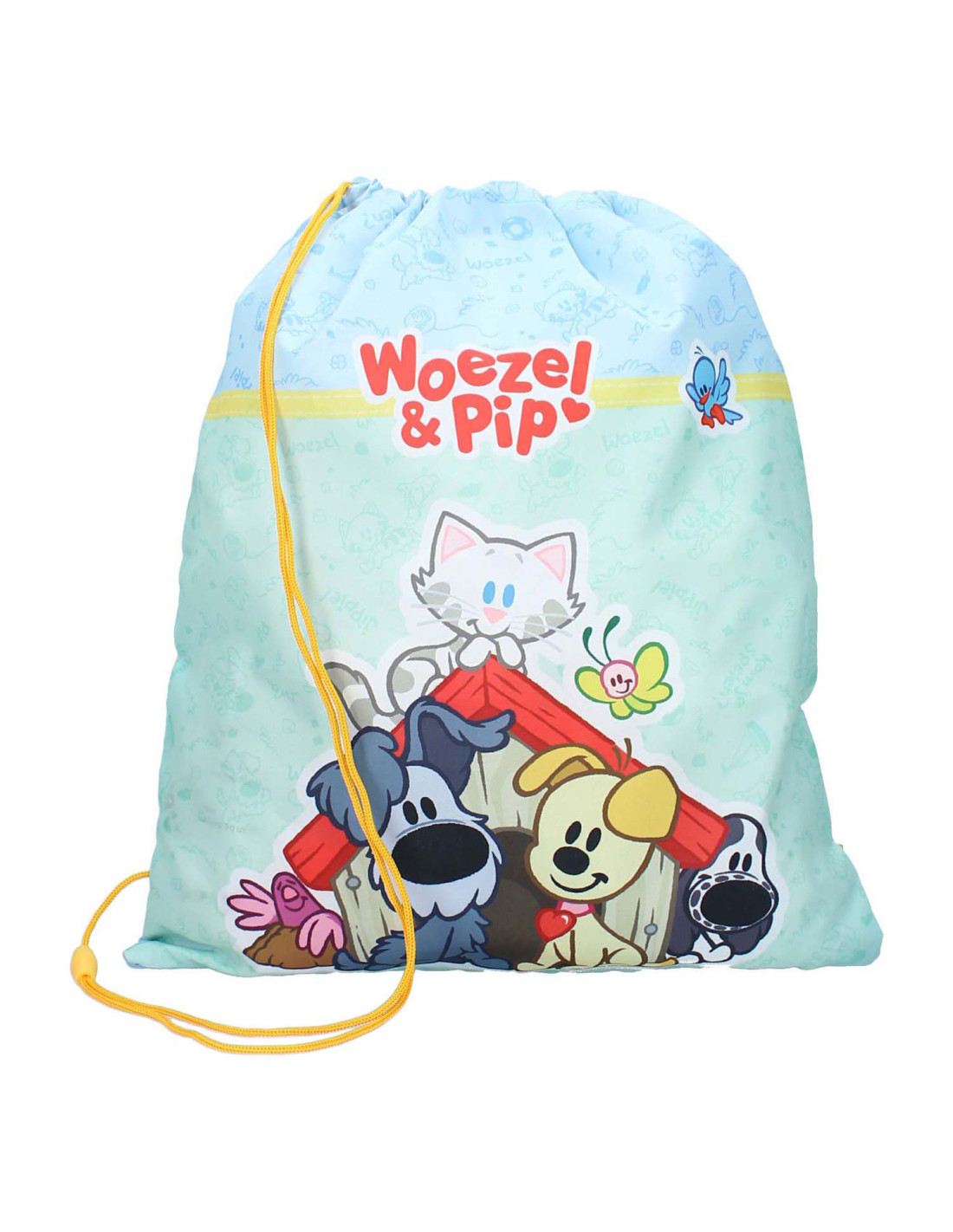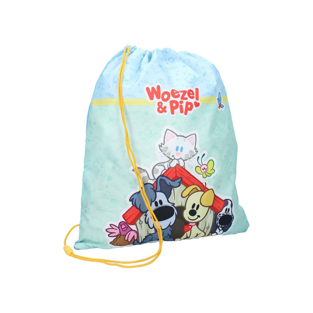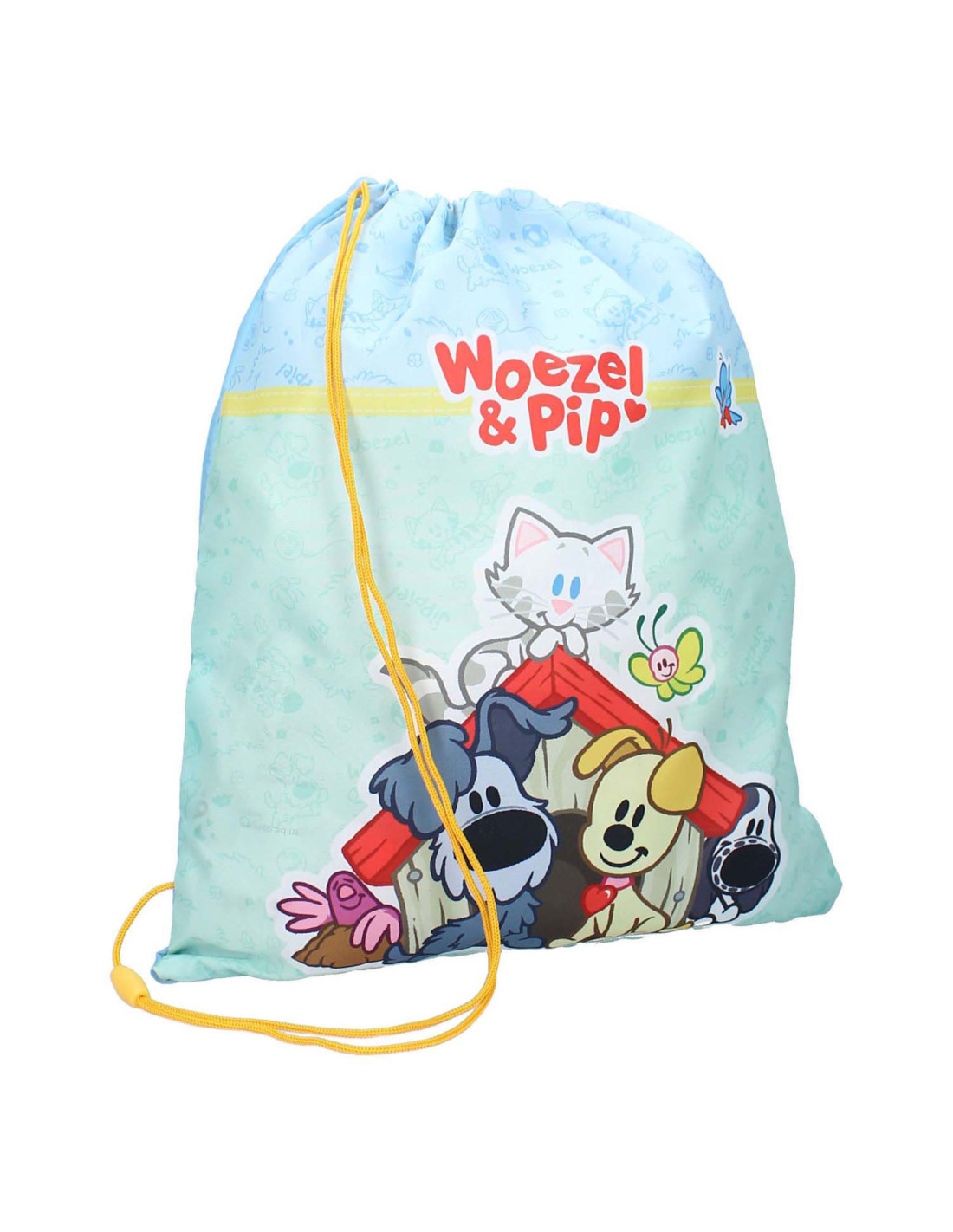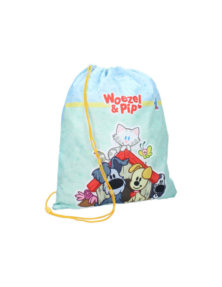De blauwe Woezel & Pip gymtas uit de collectie 'Plezier en Magie' is de perfecte metgezel voor kleine avonturiers! Al de items voor de gymles passen niet meer in de rugzak, dus biedt deze tas de oplossing. De gymtas heeft een ruim hoofdvak en is voorzien van een kleurrijke Woezel & Pip print. De gymtas heeft een opening aan de bovenkant die je makkelijk open en dicht trekt. Draag de tas gemakkelijk op de rug of over je schouder.