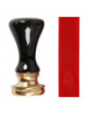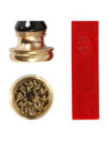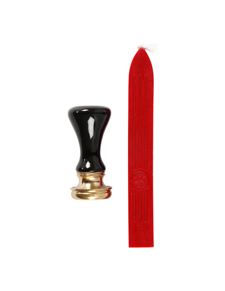 Starterset met rode zegelwas met een lont, handvat en zegel met motief van een lauwerkrans. De zegelwas wordt gesmolten en gedruppeld op de plek die u wilt decoreren. Druk daarna het motief in de warme was. Genoeg voor ca. 10 zegels