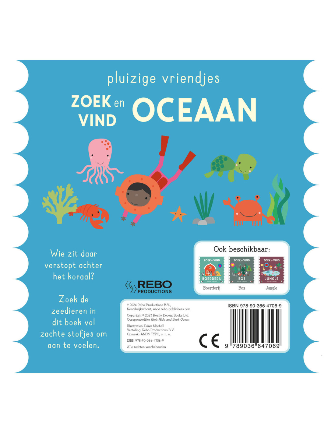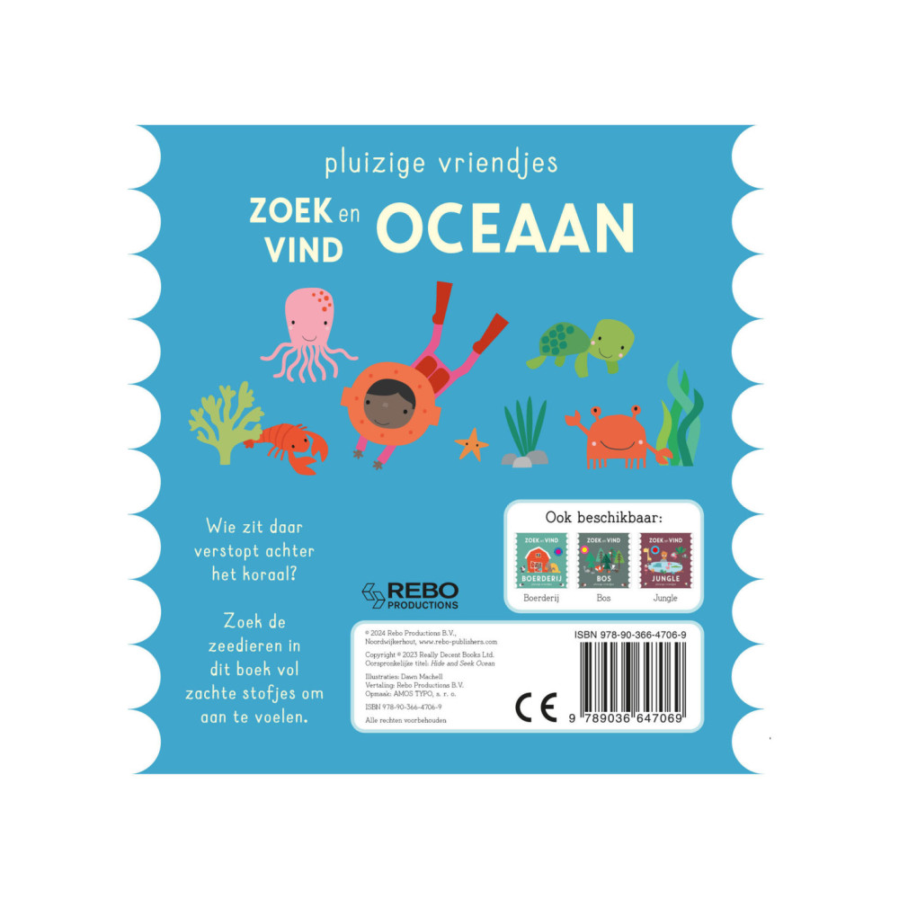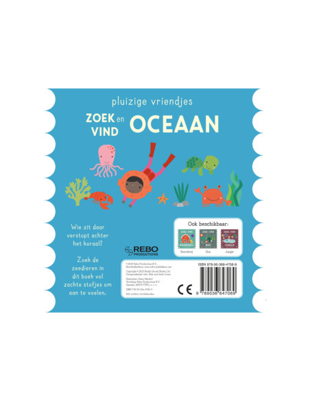 Wie zit daar verstopt achter het koraal? Zoek de zeedieren in dit boek vol zachte stofjes om aan te voelen.